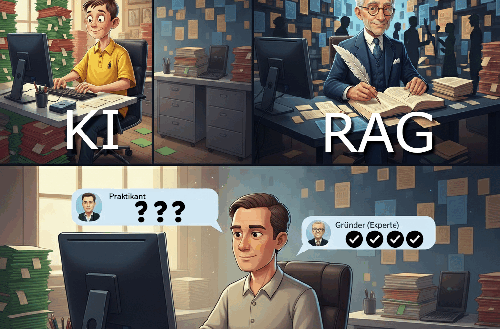 Jedes Unternehmen hat einen unsagbar wertvollen Schatz: die eigene Erfahrung. Egal ob 1 Jahr Erfahrung mit der Generierung von Porno Avataren via KI oder 120 Jahre Tradition im internationalen Logistik Großunternehmen: Berge von Dokumentation, Onboarding Protokollen, Meeting Protokollen, FAQs, Videos, Wikis, Dokumenten, Sharepoints, Google Docs, Datacubes, SAPs und wie sie alle heißen. Klar ist auch viel Wissen, Erfahrung und Weisheit in den Köpfen der Angestellten. Ein großer Teil davon ist aber schriftlich und digital dokumentiert. Und das ist der Kern: auf diese Ressource kann man mit einfach verfügbaren Mitteln zugreifen. Und die KI um dieses Wissen bereichern.